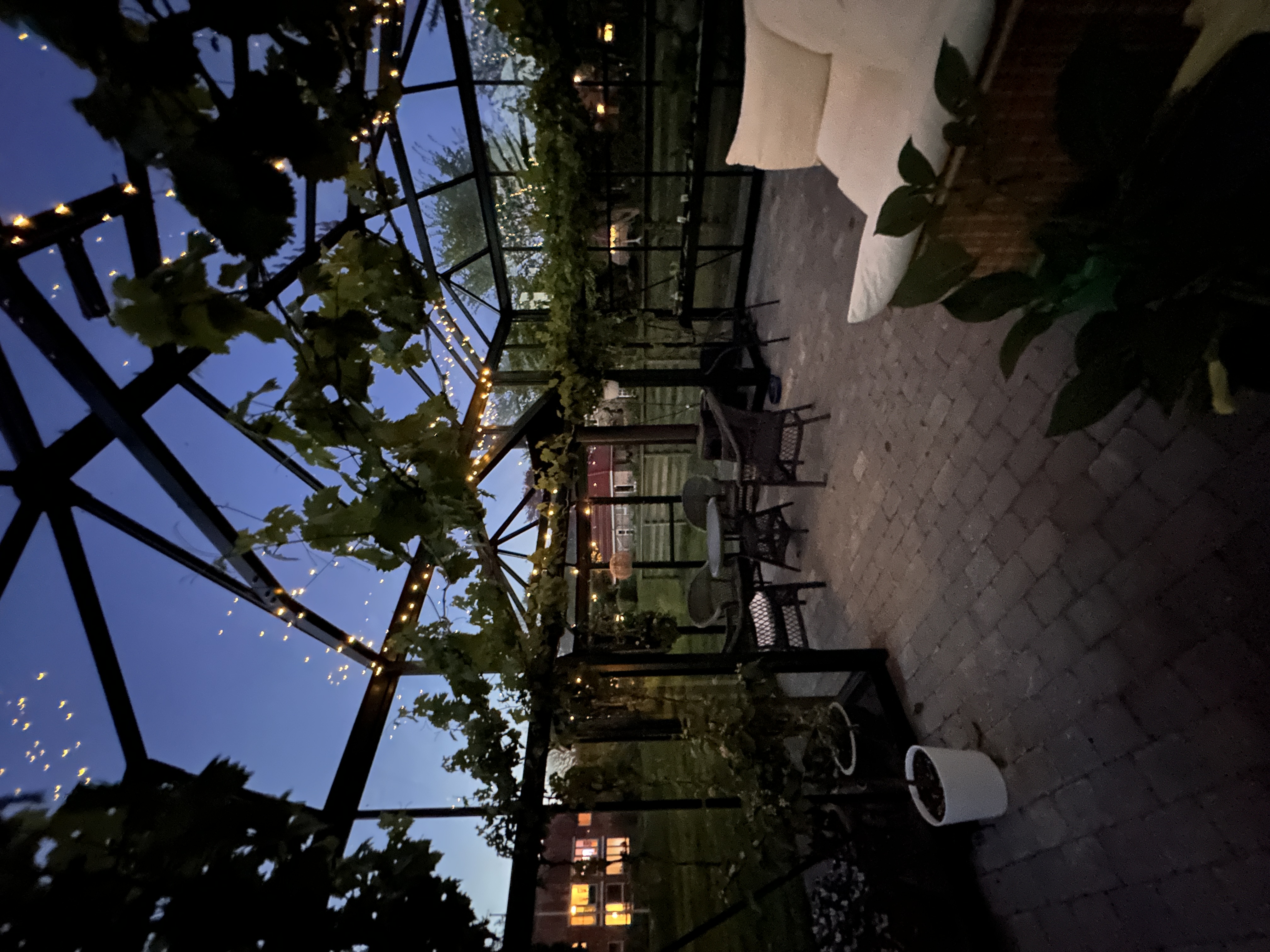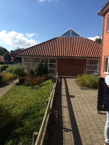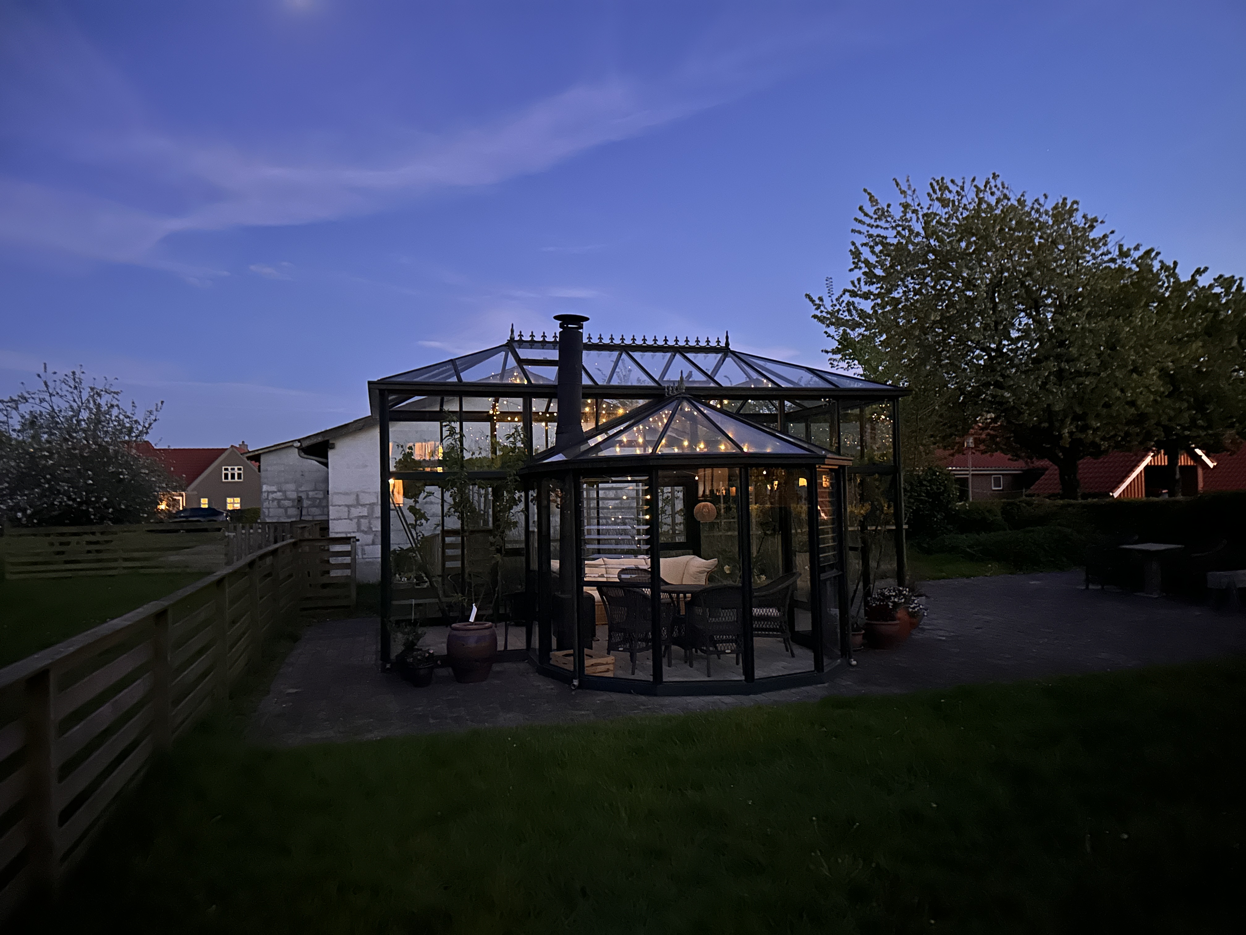 Aktivitets- og dagcenter pavillonen, en del af hjemmet og udsigt til en del af terrasse- og parkanlægget. Let adgang og kørsel på hele området for kørestolsbrugere. Vi har også gjordt udenstuen klar til sommerens hygge. Her vises der billeder om aften